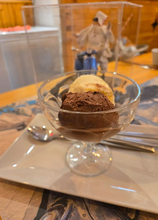 Stracciatella, Chocolate, Vainilla, una bola 3,50€ dos bolas 5€.