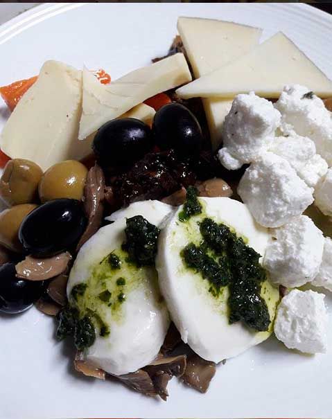 Con queso "Feta", edam, mozzarella y parmigiano.