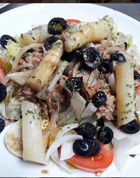 Pequeña / Grande11,00 / 14,00 €Varios tipos de lechuga, tomate, atún, espárragos, cebolla, huevo y aceitunas negras.