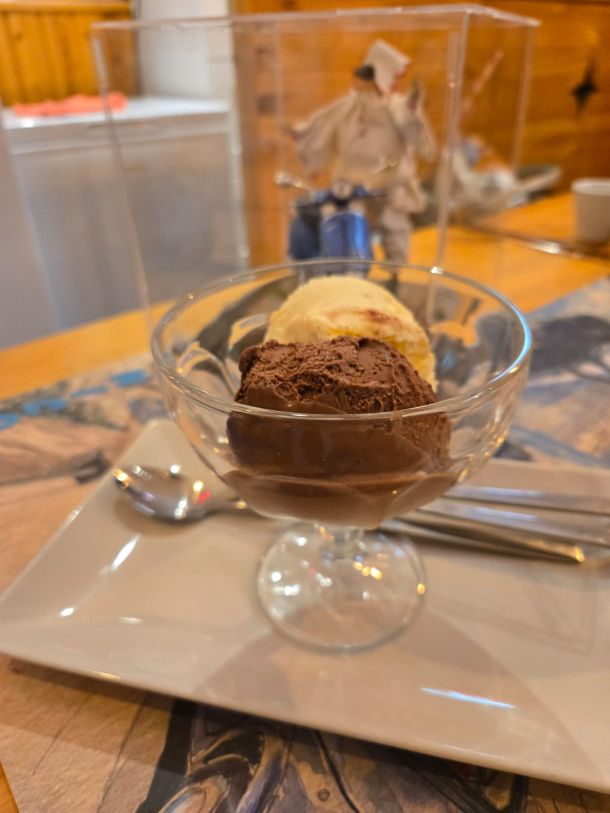 Stracciatella, Chocolate, Vainilla, una bola 3,50€ dos bolas 5€.